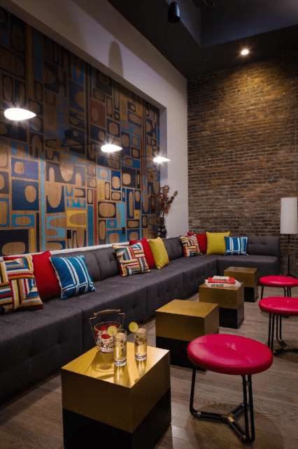 The hotel has 44 rooms, ranging from cozy micro-rooms to spacious loft-style suites. Each room is thoughtfully designed, making efficient use of space while offering high-quality linens, sleek furnishings, and bold pops of color. Guests will also appreciate the details such as vintage rotary phones, luxurious bathrooms with modern fixtures, and large windows that offer views of the bustling streets below.